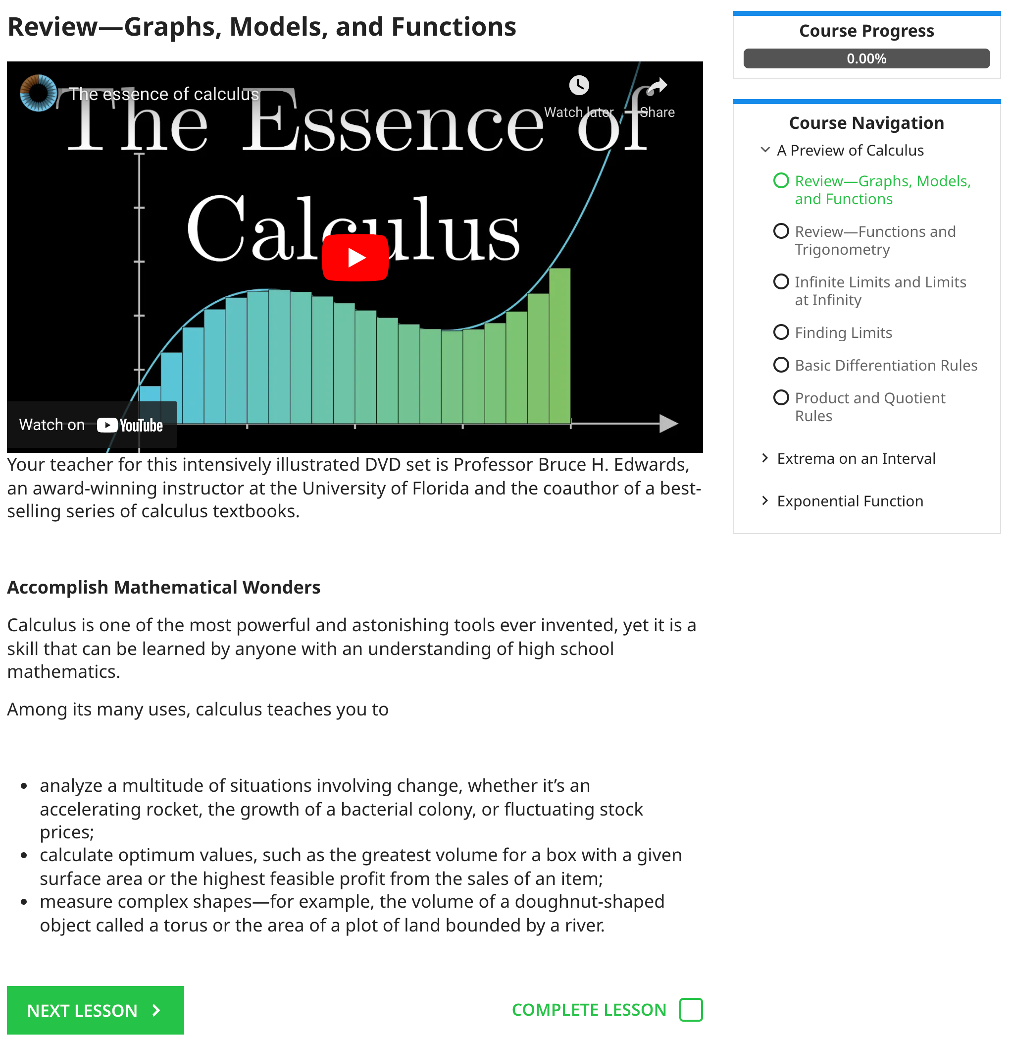 The course you’re currently taking while doing this tour of eLearnCommerce is a Standard Course. They are the most widely used format to deliver knowledge online nowadays and essentially reproduce the learning scenario of a physical school.