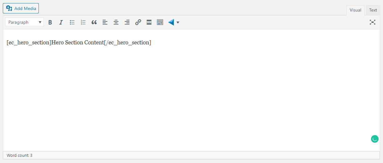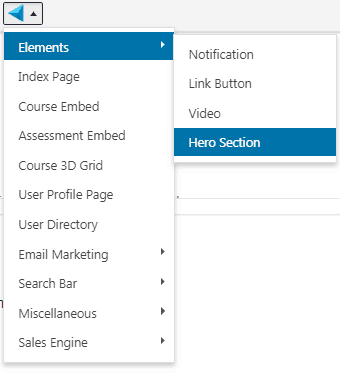 To use the shortcode, go to the course or page where you’d like to add the hero section and click the eLearnCommerce icon in the editor. Then click Elements -> Hero Section.
