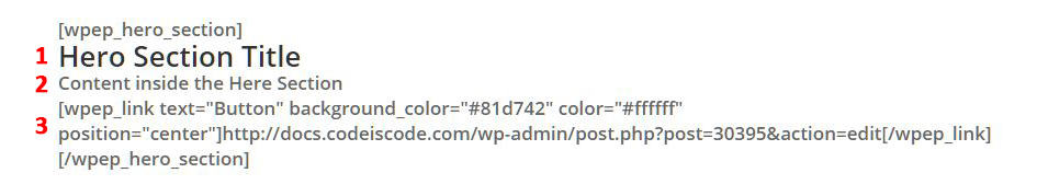 3.: This is the Link Button shortcode for the Hero Section Call-To-Action Button.