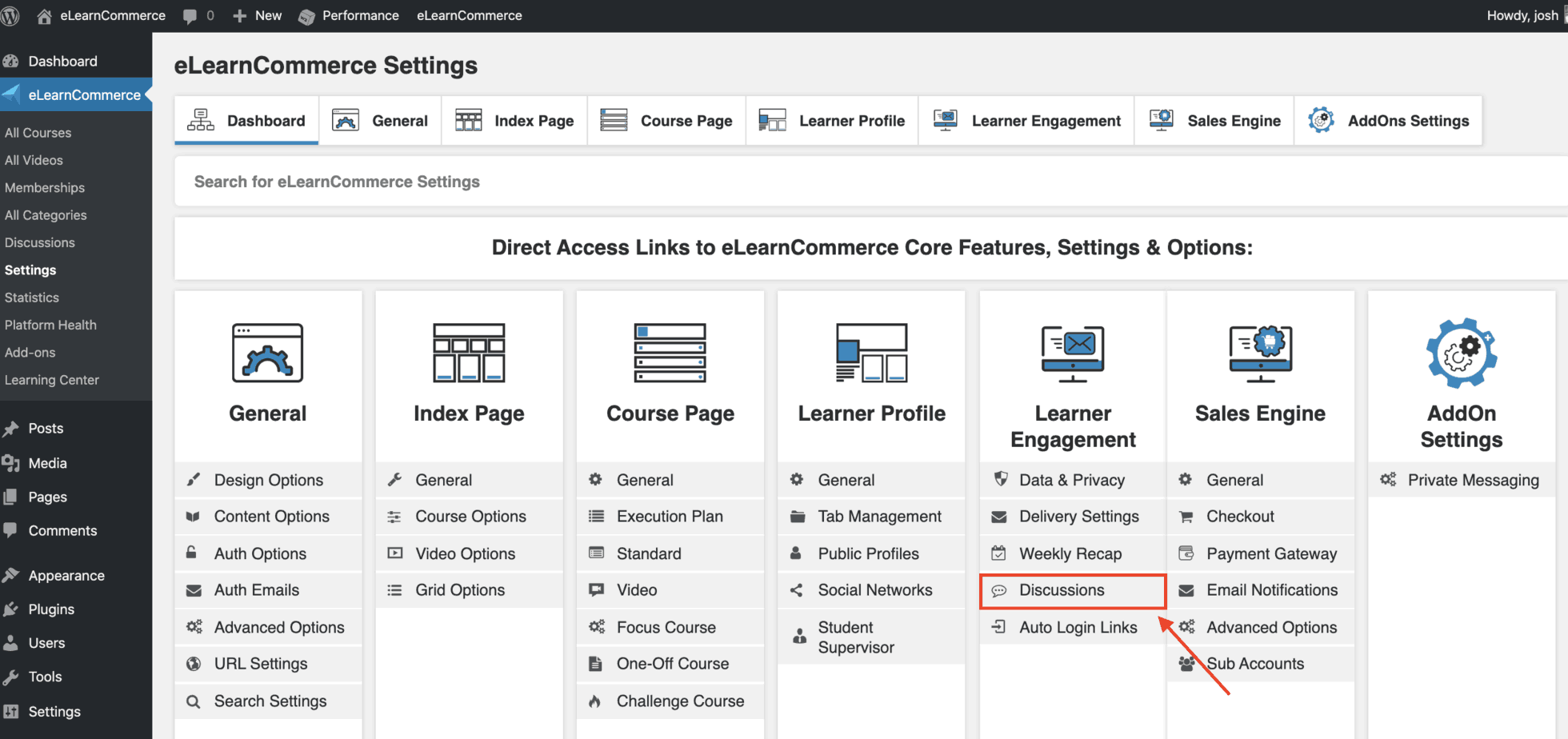 a.: Go to your eLearnCommerce Dashboard >> Discussions