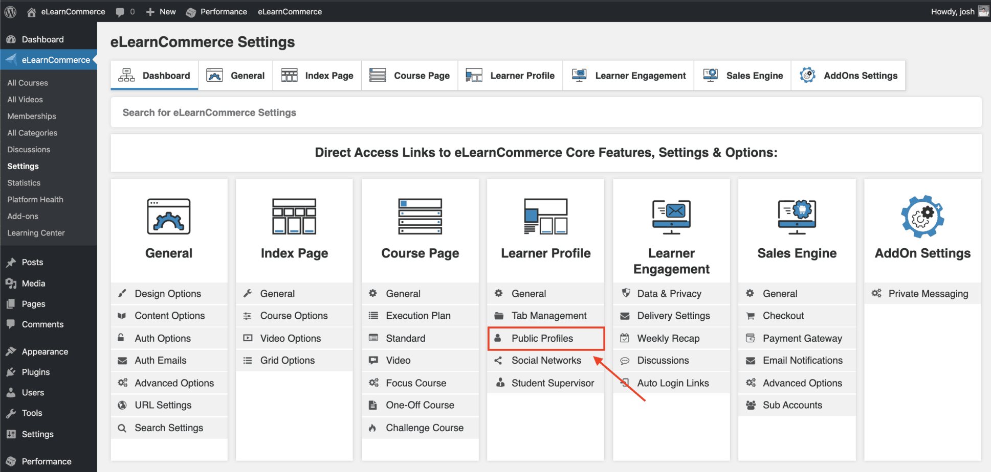 a.: Go to your eLearnCommerce Dashboard >> Public Profile