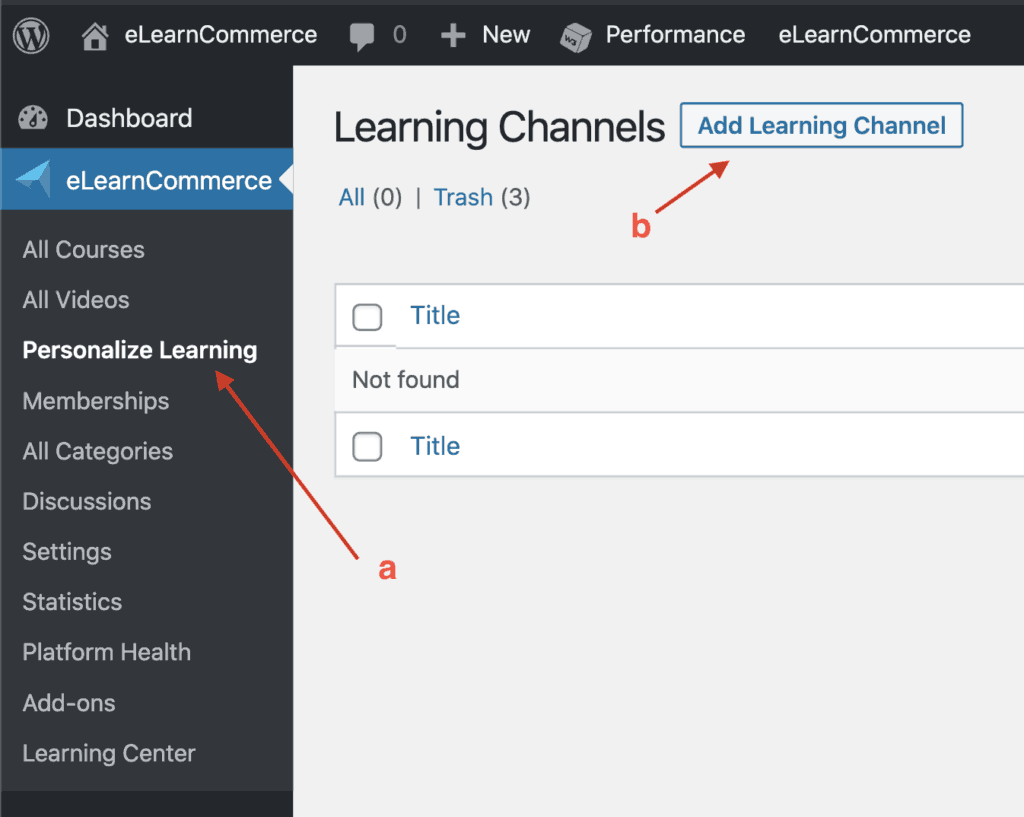 a.: Go to your WordPress Dashboard >> eLearnCommerce >> Personalize Learning