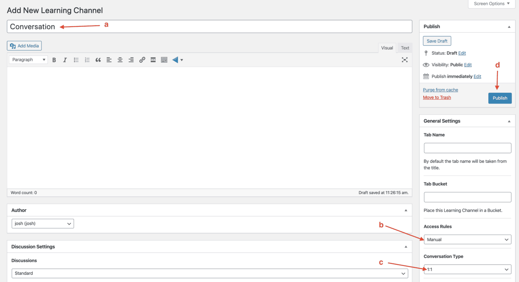 Step 4.: Create 1:1 or Group Conversation on your Learner Profile